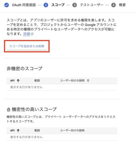 「スコープを追加または削除」をクリックします。