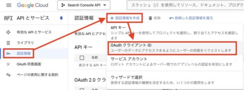 サーチコンソールAPIの有効化