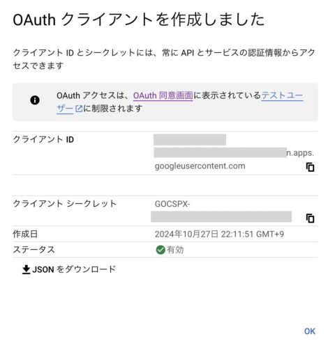 取得したクライアントID、クライアントシークレットを使ってOAuth認証URLを生成します。