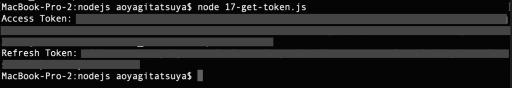 node で実行すると、(ファイル名は「17-get-token.js」としています。)