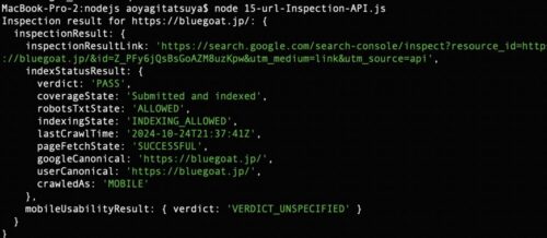 node で実行すると、以下のようにURL検査のデータが返ってきます。