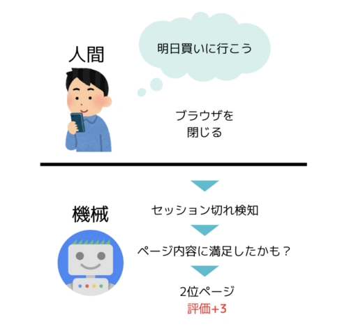このデータから、検索エンジンは「ユーザーが求める答えにたどり着いた」という判断をし、+3の評価をします。