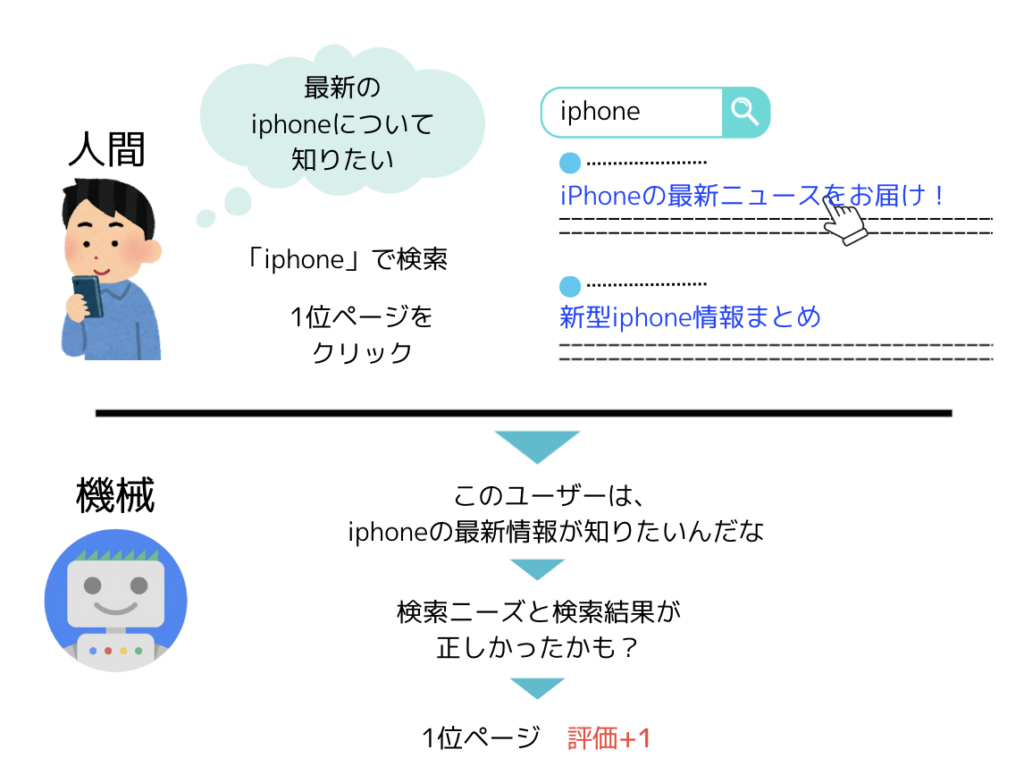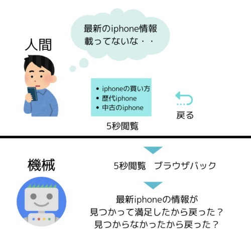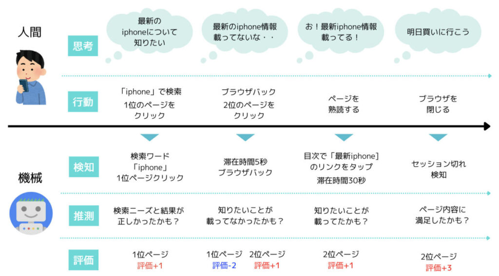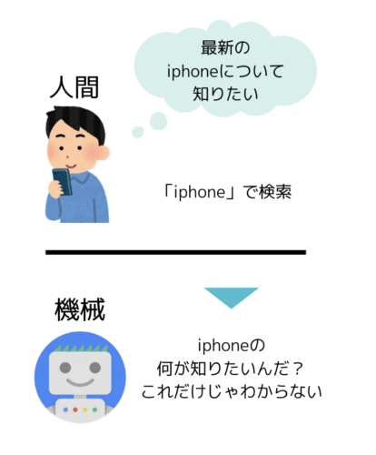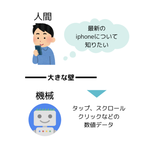 そのため、機械(検索エンジン)は、ユーザーがスマホやPCを通じて読み取れる情報を頼りに、なんとかユーザーの感情や思考を推測するしかありません。