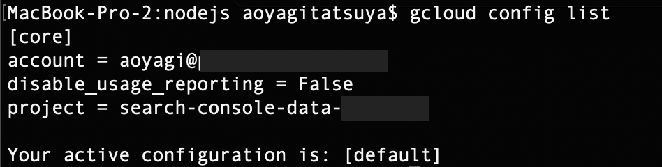 こちらに、オーナー権限を持ったGoogleアカウントと、サーチコンソールのデータが入っているbigQueryのプロジェクトIDが表示されていればOKです。