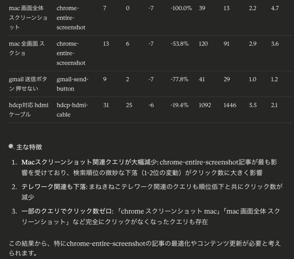 にて、AIチャットのインターフェイスでサーチコンソールの分析を実行できるようになりました。