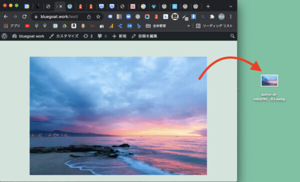 画像のあるページを表示して、画像ファイルをデスクトップなどにドラッグ&ドロップしてみましょう。