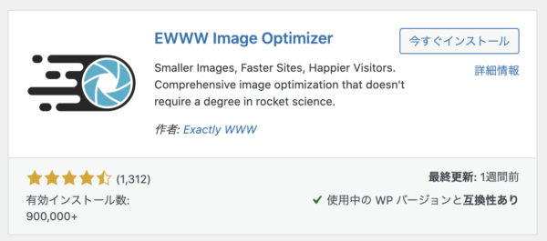 今回インストールする「EWWW Image Optimizer」は、同じく画像系の処理を行うプラグイン「Compress JPEG & PNG images」がインストールされていると、機能面で競合してしまいます。