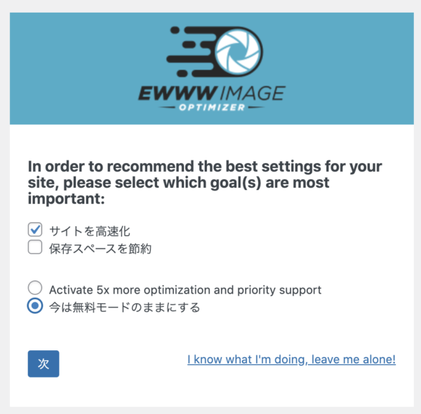 プラグインの設定を開くと、初期設定画面が表示されます。