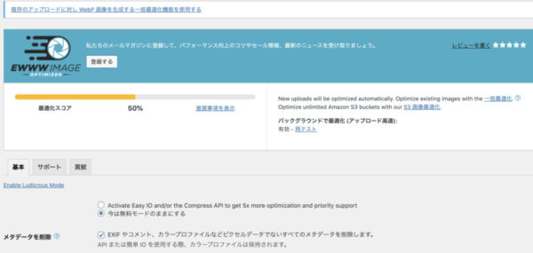 とはいえ、これらの設定(メタデータの削除や遅延読み込み)はチェックを入れておいた方が良いです。