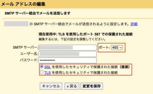- TLSを使用したセキュリティで保護された接続→SSLを使用したセキュリティで保護された接続