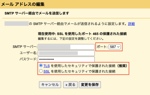 「変更を保存」をクリックし、送信テストをしてみると、今後は普通に送信できるようになりました。