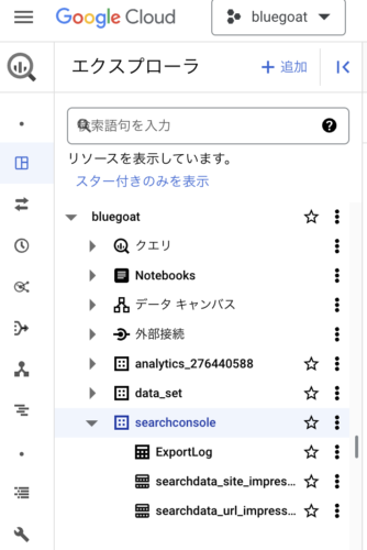 設定から24時間ほどで、BigQueryに「searchconsole」テーブルが自動生成されるようになります。