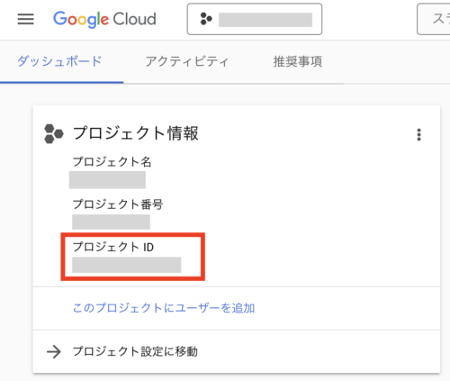 サーチコンソールに戻り、先ほどコピーしたプロジェクトIDを入力します。
