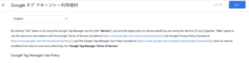 Googleアカウントでログインした状態で、タグマネージャーにアクセスします。