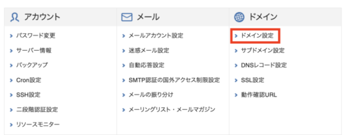 サーバーパネルより、ドメイン設定をクリックします。