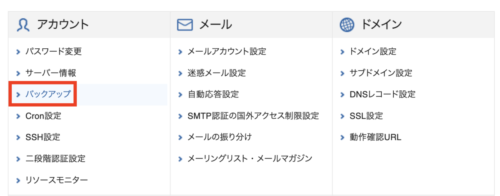 Xサーバーのサーバーパネルより、バックアップをクリックします。
