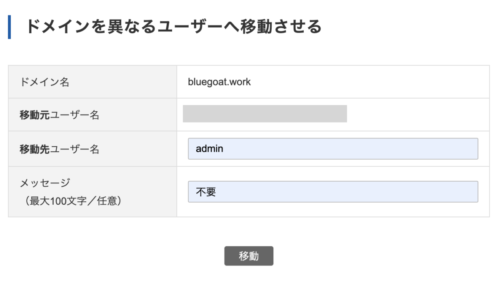 | 移動先ユーザー名 | admin |