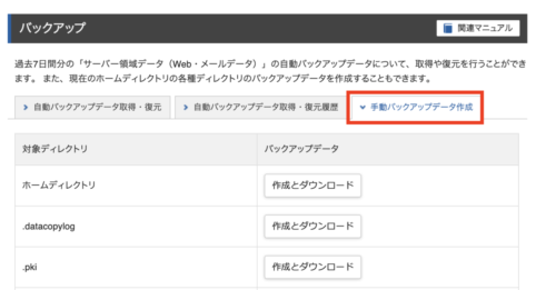 サイトデータを手動バックアップ
